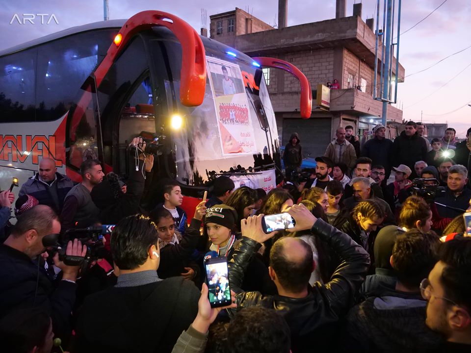 Playing their last match outside of Damascus in territory controlled by the government, the radio station couldn’t risk attending the match to cover their win, but when the team returned to Amuda in a bus passing by the radio station, the editorial team of ARTA had set up two large billboards showing a photo of the players to honour them for their achievement.